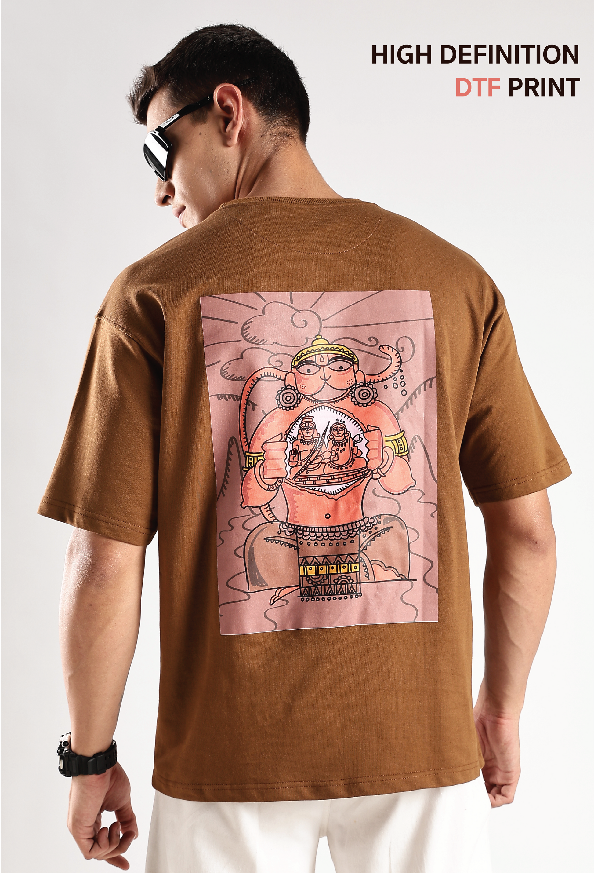The embodiment of devotion and strength, reveals the ultimate truth—Rama and Sita reside within his very being. This powerful image, drawn by Devdutt Pattanaik, captures the essence of bhakti, where love and surrender transcend the physical. Wearing this design is a reminder that true power lies in faith, and devotion is the bridge between the mortal and the divine.